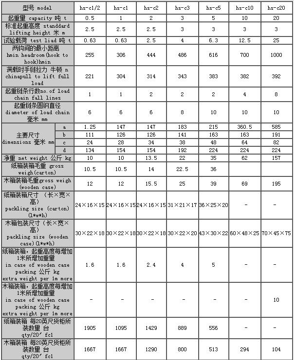 hs-c型手拉葫芦齿轮特点:日本技术革新的对称排列高速同步齿轮;国际标准齿轮钢比普通葫芦耐磨度增加一倍,转动更平稳,手拉力更轻。采用高强度的链条;对口处焊接精细,经过中频感应淬火处理符合iso3007-1984国际标准链条技术要求;适应突发超重作业;手拉链手感更好;改变普通葫芦只能垂直向下拉,能从多方向、呈45°角拉拽,适应范围更大。